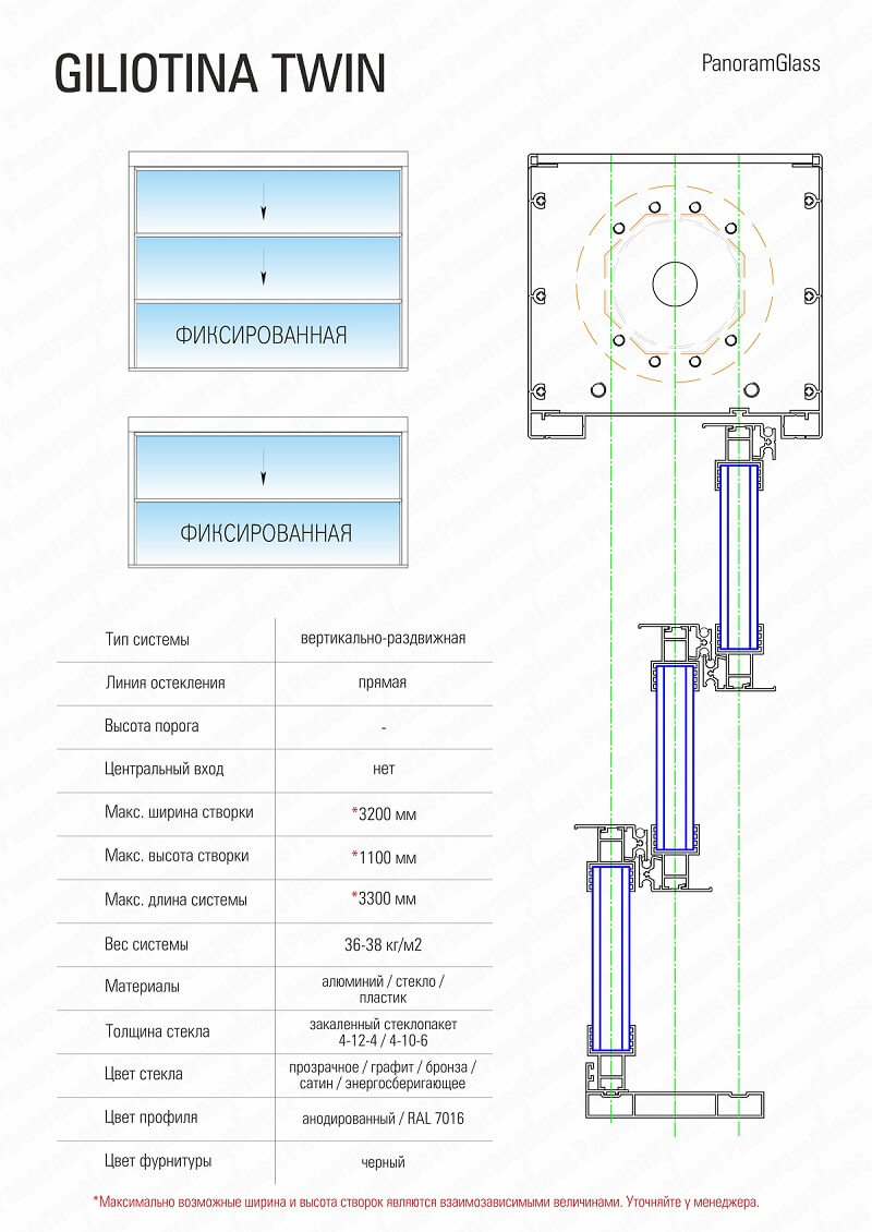 В системі GILIOTINA MONO використовуються виключно якісні алюмінієві профілю, армований сталевими нитками італійський ремінь і електропривід BEСKER виробництва Німеччини з крутним моментом в 120 Н / М, що дозволяє встановлювати стулки великих розмірів.