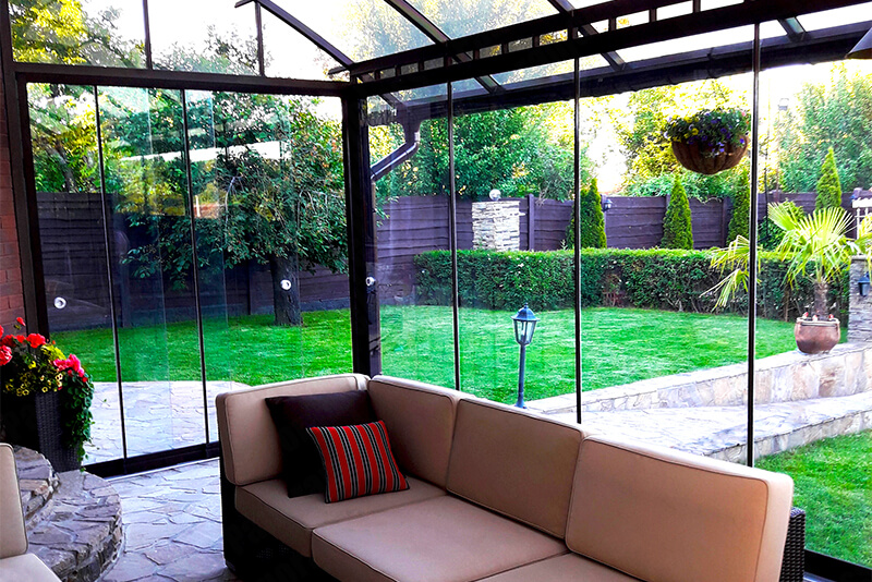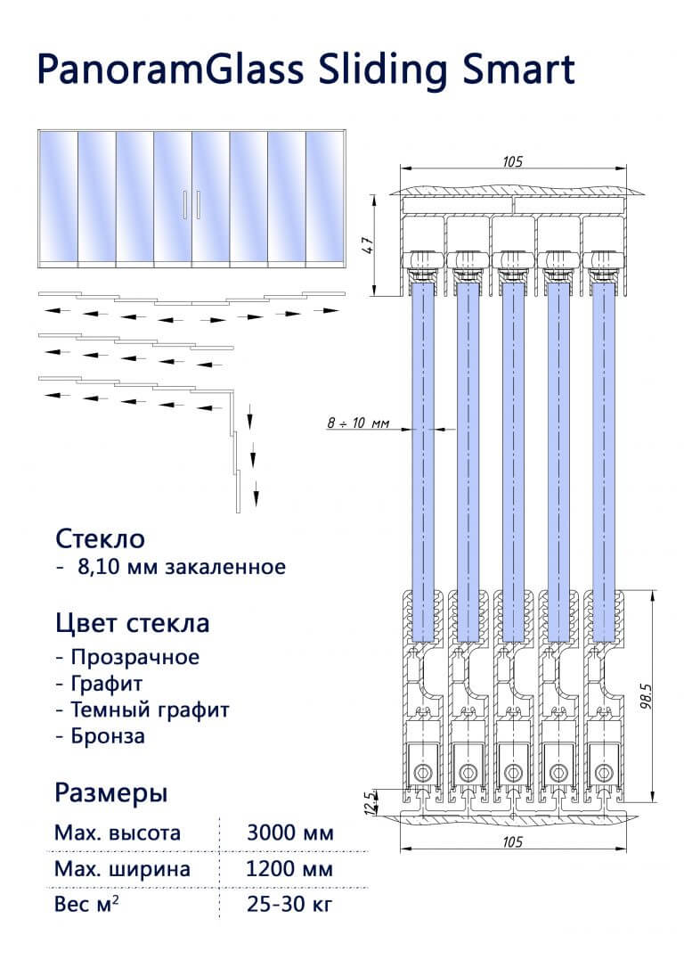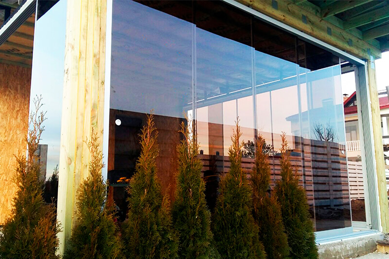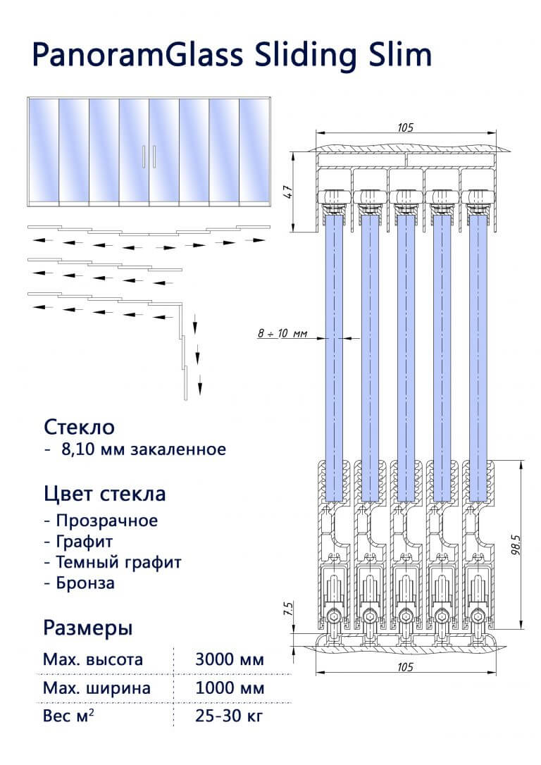 Вона відмінно захищає приміщення від продування, попадання води і при цьому створює ефект скляної стіни і дозволяє вам насолоджуватися прекрасним видом. Дана система дозволяє склити отвори заввишки до 3000 мм і шириною стулки до 1200мм. Система пристосована для використання загартованого скла товщиною 8 мм і 10 мм.